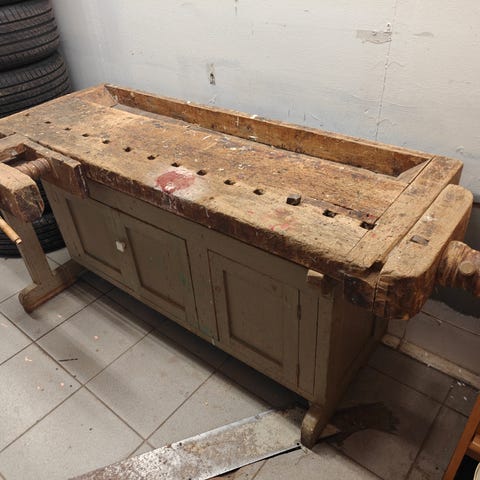 Vanha puusepän höyläpenkki.