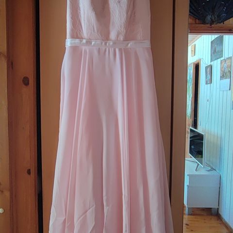 Zazabella käyttämätön mekko. Pesula pilasi mekon jolla tanssittiin. He maksoivat uuden mekon ja lyhennyttivät sen samaan mittaan kuin alkuperäinen oli.