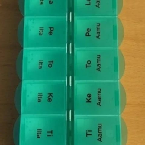 Maxkokoiset viikkolääkedosetit koko 200×130 4 lokeroa per päivä (aamu,päivä ilta ja yö) yhteis hinta