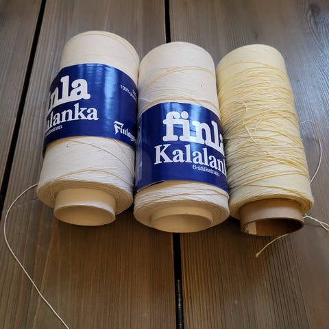 6-säikeinen kalalanka. 500g per kerä. 100% puuvillaa (Finlayson). Valkoinen.