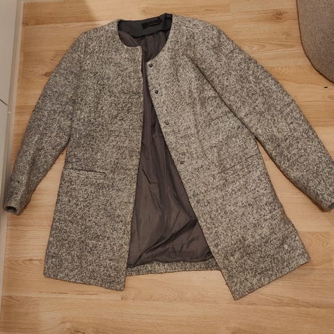 ONLY Harmaa naisten villakangastakki, koko L. Takissa on vyö vyötäröllä ja vetoketjulliset taskut. Materiaali sisältää villaa ja polyesteriä, mikä tarjoaa lämpöä ja mukavuutta ulkoiluun.
