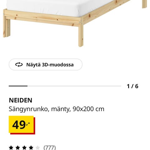 Hyvässä kunnossa Ikean sängynrunko. Alunperin ollut puunvärinen, mutta maalattu mustaksi. Yhdessä kohdassa pieni kuluma, muuten hyvässä ja siistissä kunnossa. Tänään vielä kasattuna, illalla/huomenna puretaan osiin. Patja ei kuulu kauppaan.