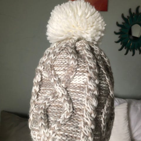 Muhkea, pehmeä, lämmin. Käytetty muutaman kerran. Fleece sisäpuolella -niin ei kutita otsaa.