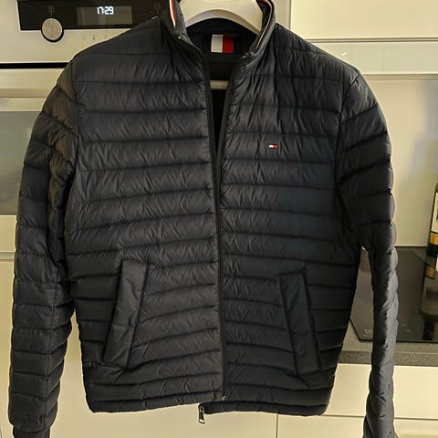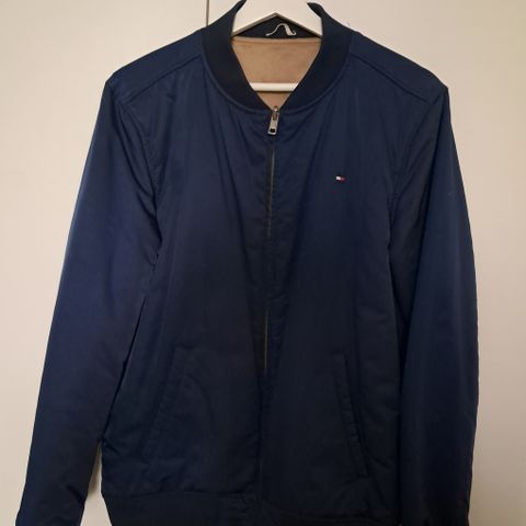 Tommy Hilfiger sininen takki koko XS. Takissa on vetoketjullinen etuosa, hupullinen malli ja raidallinen väritys punaisella, valkoisella ja mustalla. Materiaali on kevyt ja sopii ulkokäyttöön. Takissa on myös Tommy Hilfigerin logo vasemmassa hihassa.