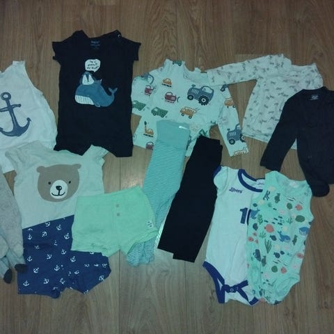 Myydään vaatepaketti, jossa kaksi paitaa ja kahdet housut kokoa 74. Housut paikattu polvesta sisäpuolelta. Menevät konttaajalle rymytessä. Lisäksi pipo ja mekko kokoa 80, mutta ehkä enemmän 74.
