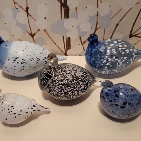 Lasi koristeita. Kala, Joutsen ja pingviini. Hinta 9e/kpl tai 20e könttänä.