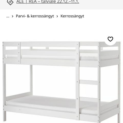Myydän valkoinen Ikean Mydal kerrossänky.