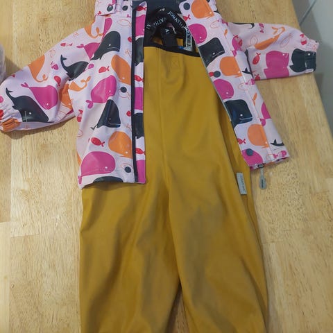 Jonathanin sadehousut henkseleillä. Koko 80.