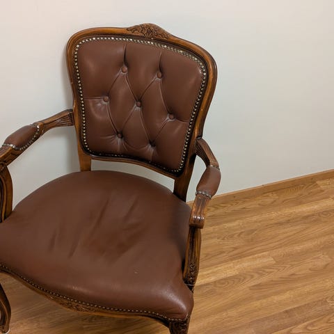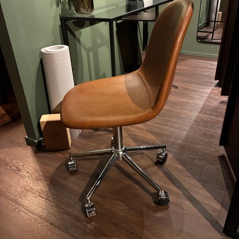 Konjakinväristä tekonahkaa oleva työtuoli, korkeus säädettävä.