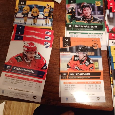 Lisäksi löytyy 25-26 Blueline liiga kortteja sekä 24-25 upper deck mvp sarjan kortteja.