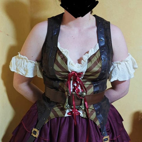 Viitta, kravaatti, kaulahuivi, medaljonki ja taikasauva.