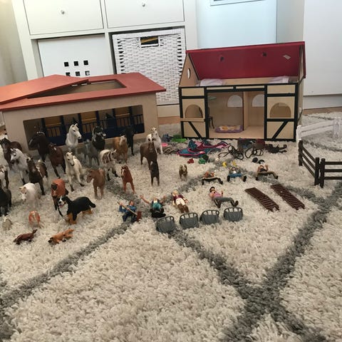 Myynnissä todellinen aarre heppaleikkeihin ja keräilyyn! Erittäin hyväkuntoinen kokonaisuus, joka sisältää Grand Champions -tallin sekä useita tuotannosta poistuneita Schleich-hevosfiguureja sekä pari leimatonta hevosfiguuria, joista ei tarkempaa tietoa.