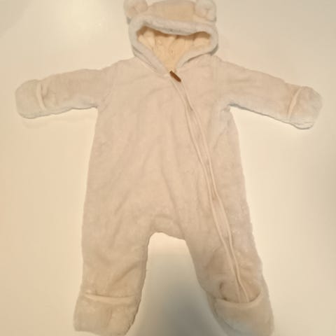Nyt halvalla hieman jo elämää nähnyt ja nyppyyntynyt Newbie nallepuku koossa 47 (6-9 kk).