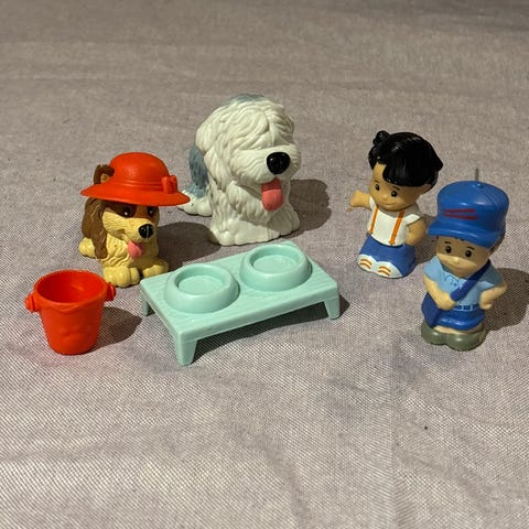 Fisher-Price Little People Pet Home lasten lelu, sisältää lemmikkieläinhahmot ja pienen auton.
