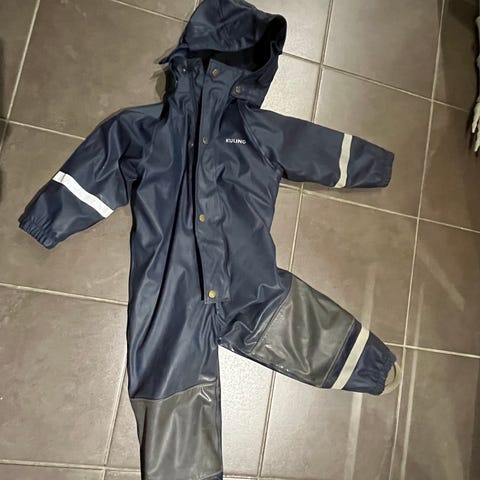 Haarakohdassa on pientä kulumaa, joka on tullut normaalista käytöstä (näkyy kuvassa). Ei ole kuitenkaan kulunut puhki eikä vuotoja ole- pelkästään kosmeettinen jälki. Muuten haalari on ehjä, vetoketju toimi hyvin ja kaikki heijastimet sekä jalkalenkit ovat kunnossa.
