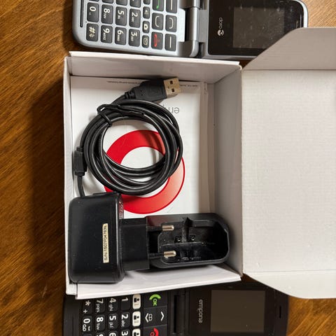 DORO langaton puhelin kahdella luurilla ja latausasemilla parinteiseen puhelinverkkoon. Sisältää latausasemien verkkomuuntajat.
