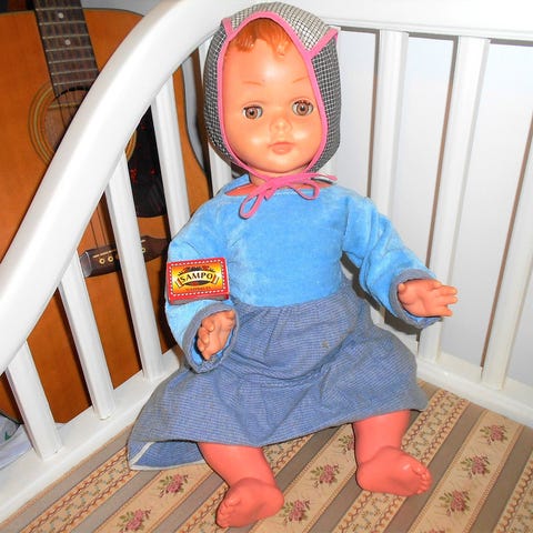 Ikäisekseen hyväkuntoinen vanha nukke.