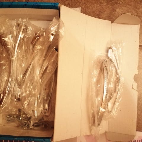 Käytetyt kahvat uudenveroisessa kunnossa. Materiaali muovia. Ruuvit tulee mukaan. Yhteishinta, kaikki kerralla.