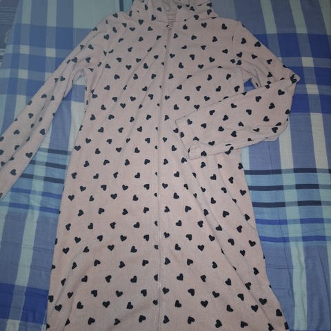 H&M lasten frotee kylpytakki koko 134-140 vaaleanpunainen sydänkuvio tytöt