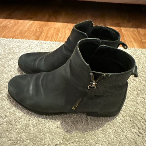 Uudenveroiset muutaman kerran testatut mustat nahkaiset nilkkasaappaat, nilkkurit kokoa 38, 7-7,5.