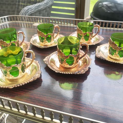 Myydään 70-luvulla Unkarista ostetut keraamiset tummanvihreät mokkakupit.