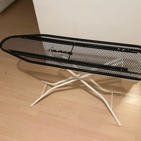 Ehjä ja ilmeisesti käyttämätön tuo on. Varmuutta ei ole, onko se silityslautaan kuuluva osa vai johonkin muuhun tarkoitukseen sopiva. Alaosassa on metallikiinnitys. Sen saa hakea 3 eurolla.