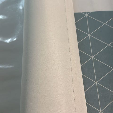 Kuin uusi mutta kahdessa kohdassa ala osassa pieni tumma tahra. Koitettu pestä kostealla, ei lähteny pois. Väri tumman harmaa. Leveys 136cm.