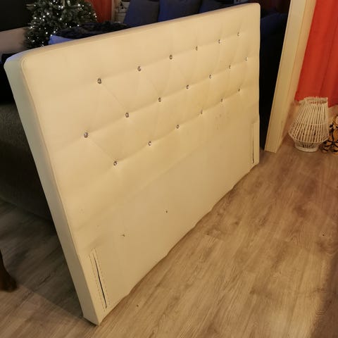 Myydään puinen maalattu sängyn pääty. 160cm.