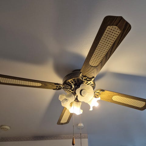 Valkoinen tuuletinvalaisin kukka lasikuvuilla.