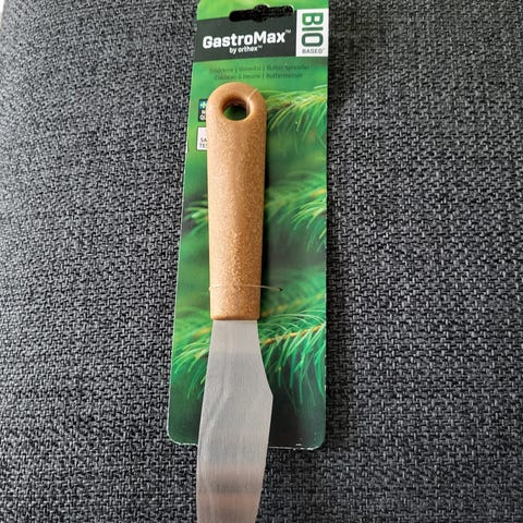 Sopii levitteen levitykseen. Tylppä voiveitsi, jossa muovinen kahva ja metallinen teräosa. Keskellä logona Fiasconaro kakkumerkin logo. Kestää astianpesukonetta. Myydään käyttämättömänä alkuperäisessä kunnossa. Koko pituus 17 cm, josta metalliterän 7,5 cm.