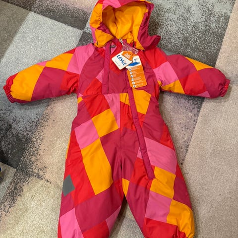 Lassie suprafill toppapuku 80 cm hyvällä fleece vuorella, edustassa hieman tummentumaa ja lenksut rispaantuneet.