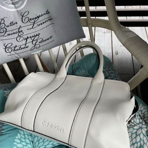 Calvin Kleinin laukku, uudenveroinen. Saa olkalaukuksi tai vyölaukuksi. Leveys 24cm. Postikulut lisätään hintaan.