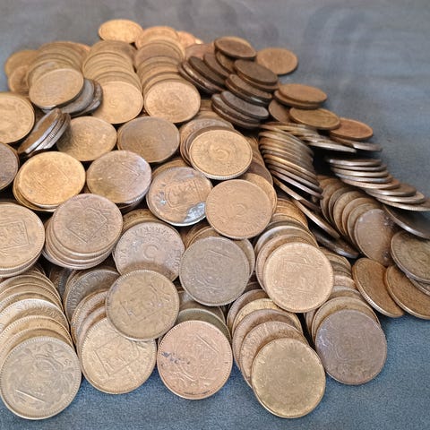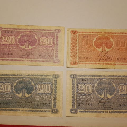 Kuvan Suomen 10 markkaa alpro. kolikkorahat vuosilta: 1929, 1930, 1931 1932, 1938.