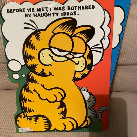Garfield korttien kokoelma, sisältäen erilaisia postikortteja, joissa esiintyy sarjakuvahahmo Garfield.