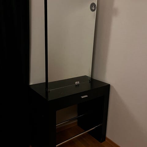 Ikean Godmorgon -peilikaappi ja lamppu.
