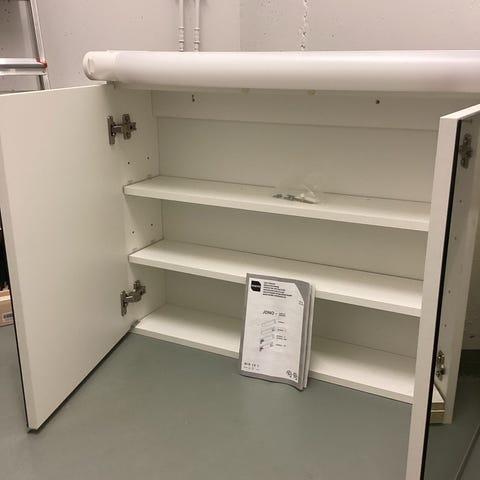Ikean mallia peilikaappi ja lamppu, Godmorgon. Ei enää myynnissä Ikeassa.