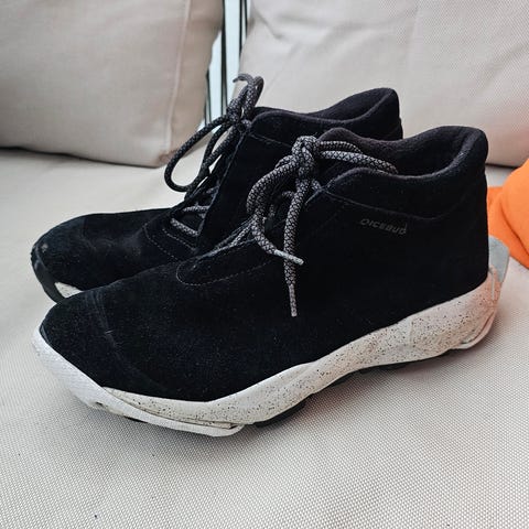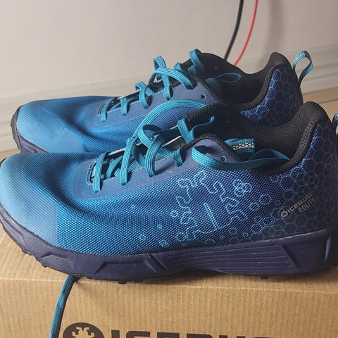 Kokoaan vastaavat kevyet ja helppokäyttöiset Icebug -nastakengät myydään ylimääräisinä. Kenkien pinta vettähylkivää tekstiiliä. Edessä vetoketju eli helppo sujauttaa jalkaan