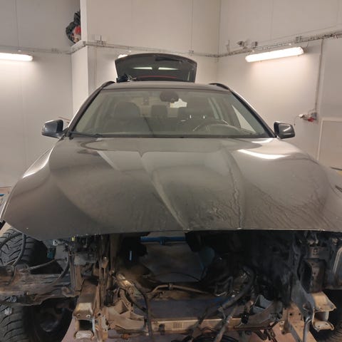 Auton vaihdon myötä turhiksi jääneet F10 kromiset munuaiset, peilinkuoret, 2kpl led oven valot ja 2kpl 82mm mustavalkoisia logoja.