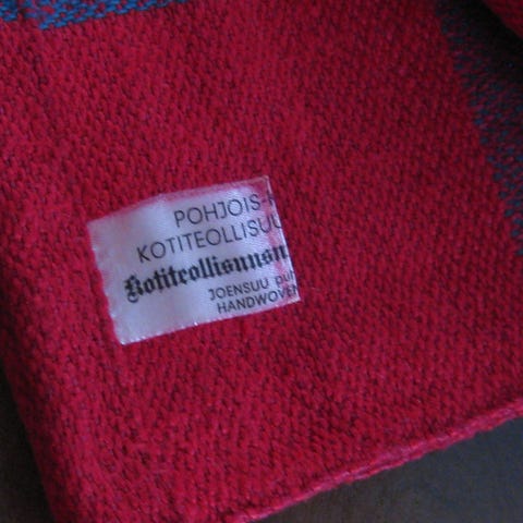 Karjala-kuvioinen pöytäliina. Koko 115×120 cm. Puuvilla/pellava, kunto hyvä, ei reikiä tai tahroja.