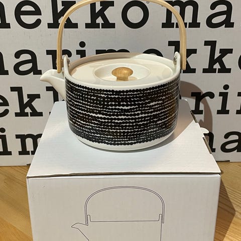 Myydään hyväkuntoinen Marimekon Siirtolapuutarha -teekannu. Koko 7 dl.
