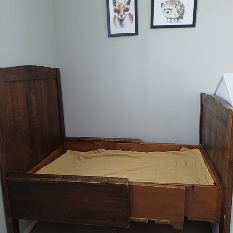 Teetetty puusepällä, palvellut lasten sänkynä. Pituus 176 cm ja leveys 80 cm. Tarjoa!