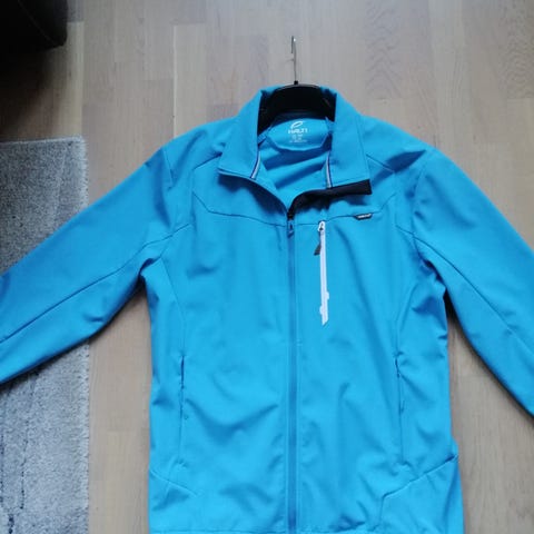 Parisen vuotta vanha malli, todella vähällä käytöllä ollut. Venyvä kevyt takki, harjattu sisäpinta, pitää tuulen hyvin poissa ja hylkii vettä. Huppu ei ole irroitettava.