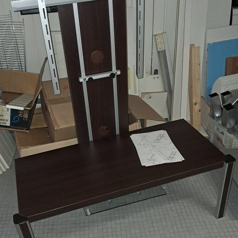 TV-teline musta lasialustalla kääntyvä pöytäteline