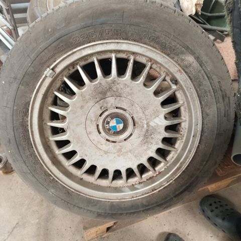 Bmw vanteet kumeilla, 2 kpl hyväkuntoisia ja 2 kpl huonokuntoisia renkaita