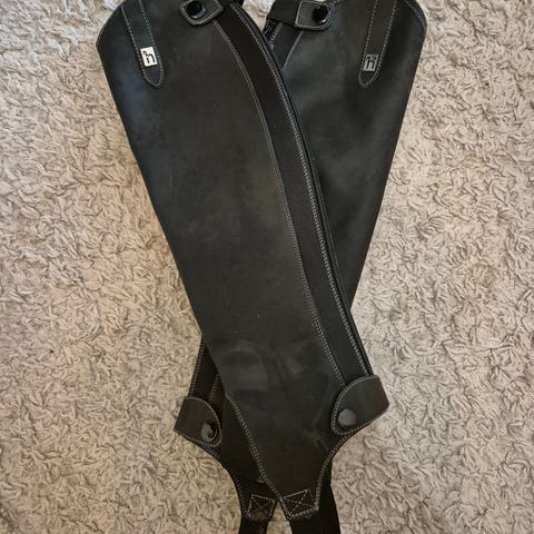 Siistit ja ehjät nahkaiset Horzen minichapsit. Yhden kauden olleet käytössä ja hoidettu hyvin. Suutarilla korjautettu toisesta pystyommel takaa vetoketjun vierestä.