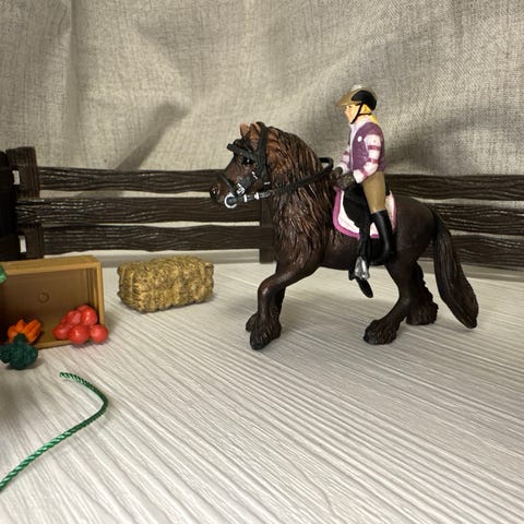 Schelich ratsastaja Alina ja hevonen Safira (Rambon talli) +varsa.