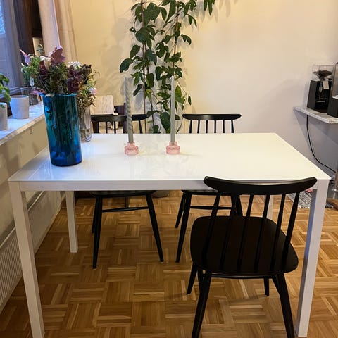 Alunperin terassipöytä (Jutlandia/Jysk), käytetty sisällä.