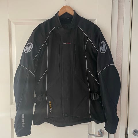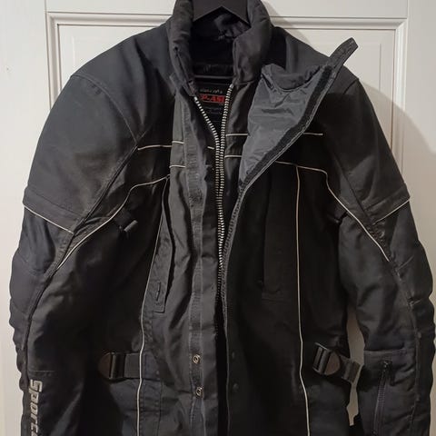 Siisti iroitettavilla selkä, olkapää ja kyynärsuojilla. Takki koko S11. Housut S.