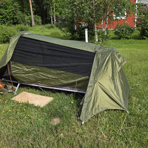 Uudenveroinen kerran koottu Sierra kupoliteltta + itsetäyttyvä makuualusta.