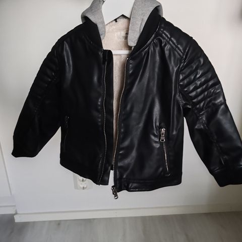 H&M keinonahkatakki, koko 98. Collegehuppu ja teddysisus (ei hihoissa). On siis kylmemmille keleille. Siisti.